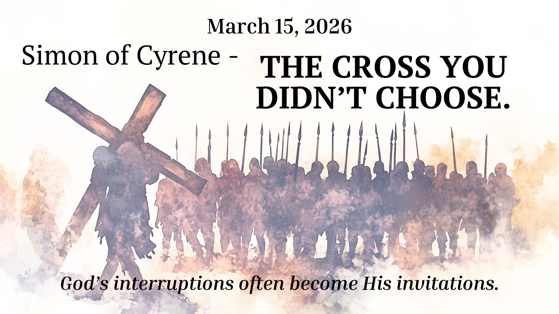 Mar 15, 202611 AM Simon of Cyrene - The Cross You Didn’t ChoosePassage: Mark 15:15-25 | Category: FACES ON THE WAY TO THE CROSS
